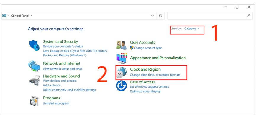 ChọnCategoryở phần view by > ChọnClock and Region.