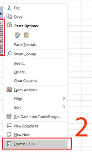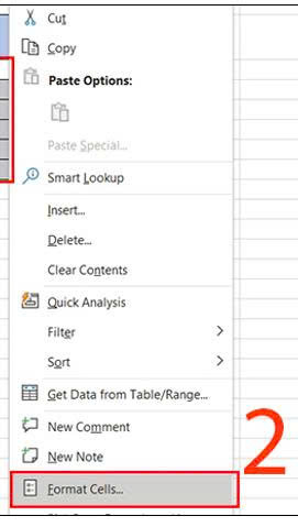 Quét chọnvùng dữ liệu> Nhấp chuột phải để chọnFormat Cells.