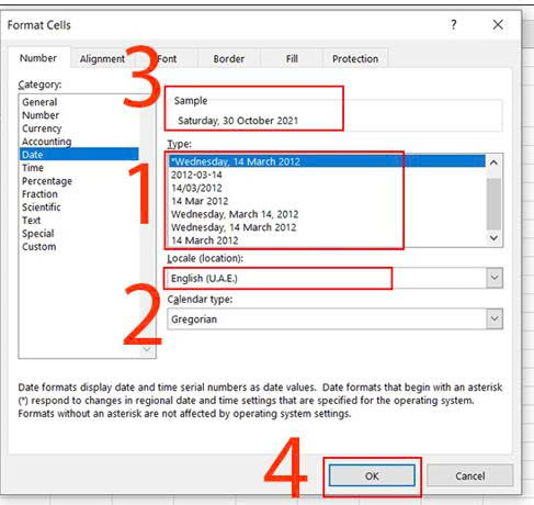 Ở tính năngDatebạn chọn kiểu định dạng tạiType> Chọn quốc gia tạiLocale (Location)> Xem trước kiểu định dạng tạiSample> NhấnOKđể lưu lại.